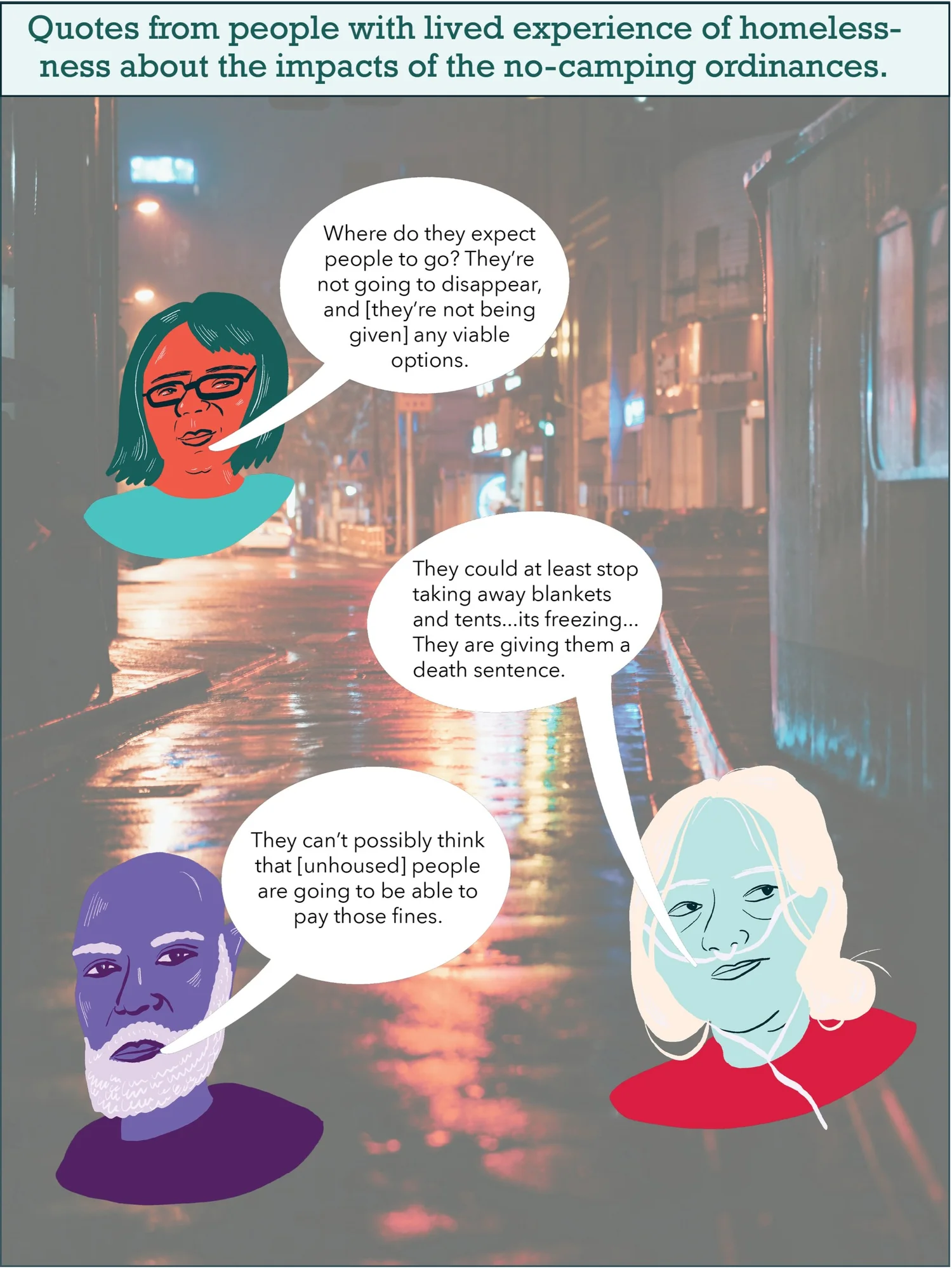 A piece created for an employer about common city codes that implicitly criminalize homelessness.