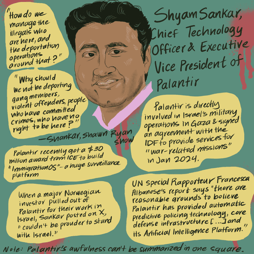 I created this series to document the ways in which the Indian-American community plays a key role in America’s military industrial complex and the ongoing genocide in Gaza.
